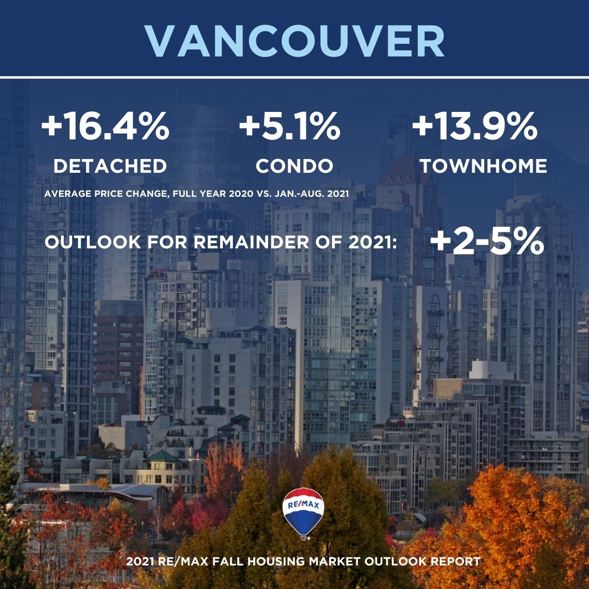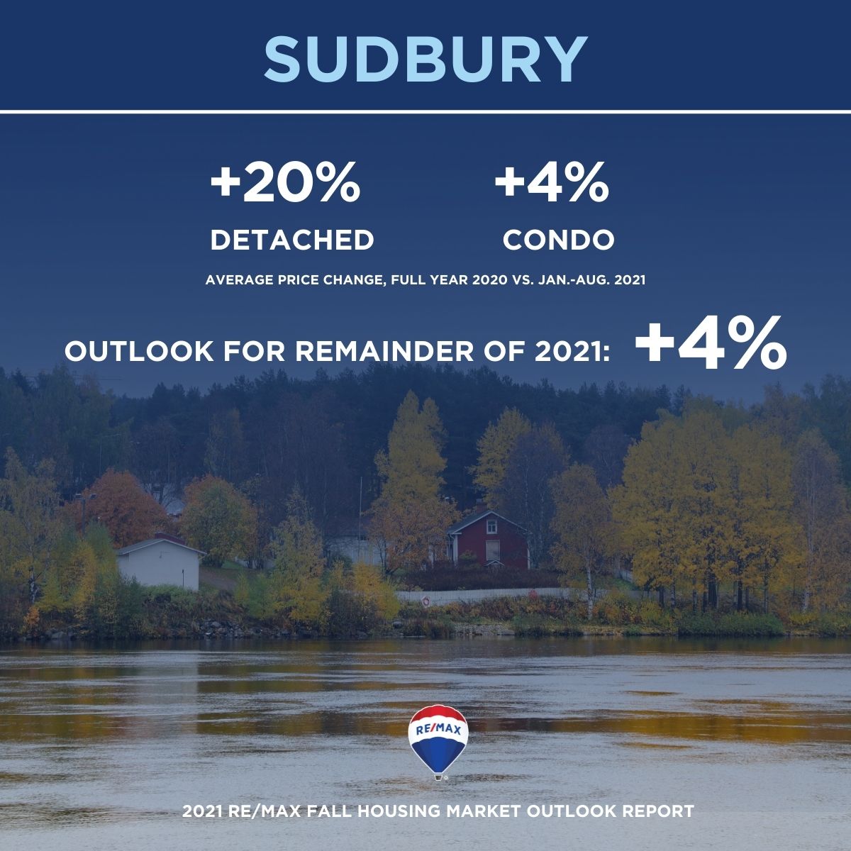 The 2021 RE/MAX Fall Housing Market Outlook Report includes data and insights from RE/MAX brokerages. RE/MAX brokers and agents are surveyed on market activity and local developments. Regional summaries with additional broker insights can be found at REMAX.ca. The fall outlook is based on predictions of RE/MAX brokers and agents. The overall outlook is based on the average of all regions surveyed, weighted by the number of transactions in each region.