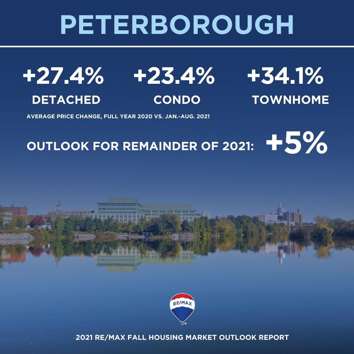 Single-detached homes experienced the biggest price gains when comparing 2021* to 2020 data, rising between 6.8 and 27.3 per cent across 26 markets surveyed in the report. RE/MAX brokers and agents expect this trend to continue into the fall, driven by strong demand by young families.