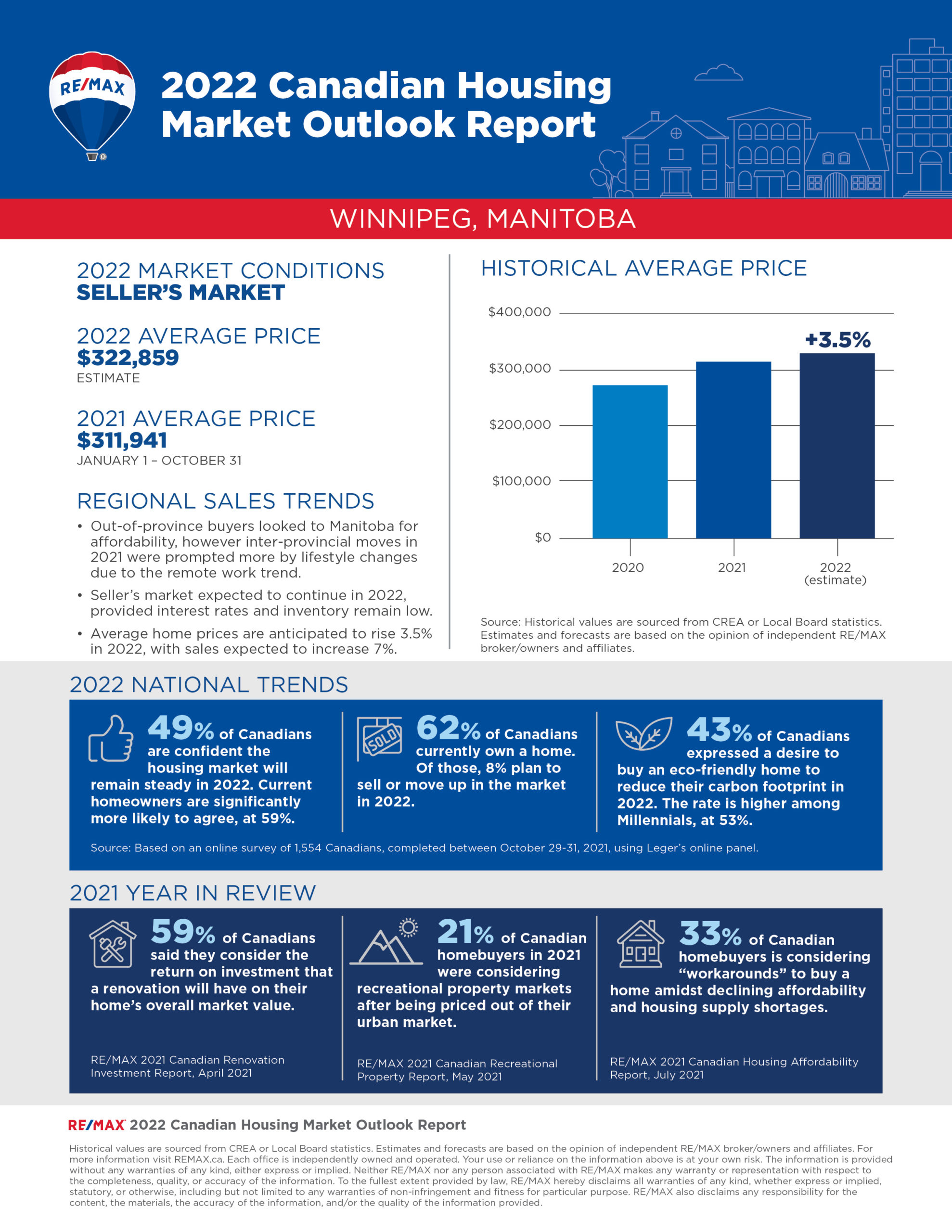 The 2022 RE/MAX Housing Market Outlook Report includes data and insights from RE/MAX brokerages. RE/MAX brokers and agents are surveyed on market activity and local developments. Regional summaries with additional broker insights can be found at REMAX.ca. The overall outlook is based on the average of all regions surveyed, weighted by the number of transaction in each region.